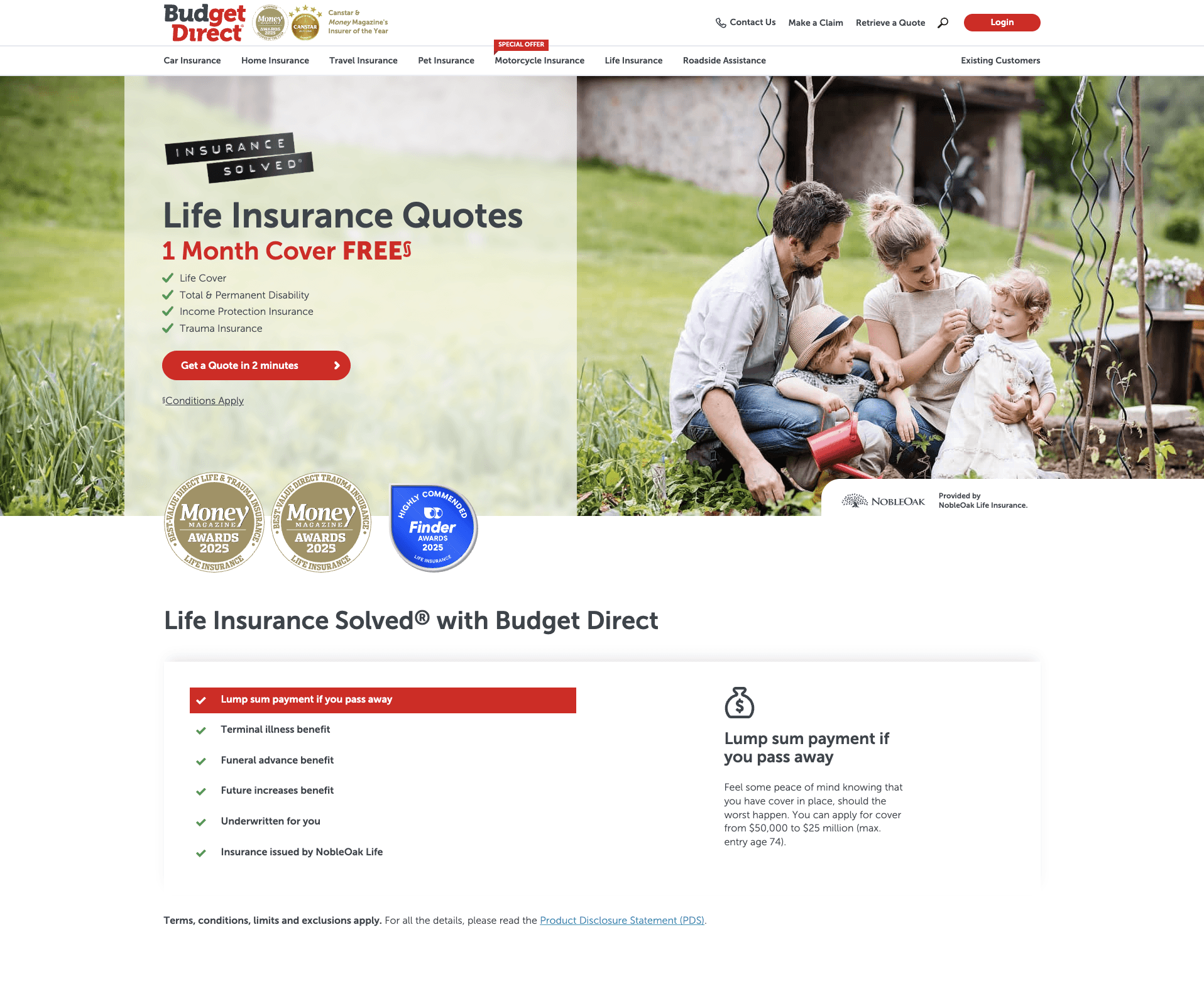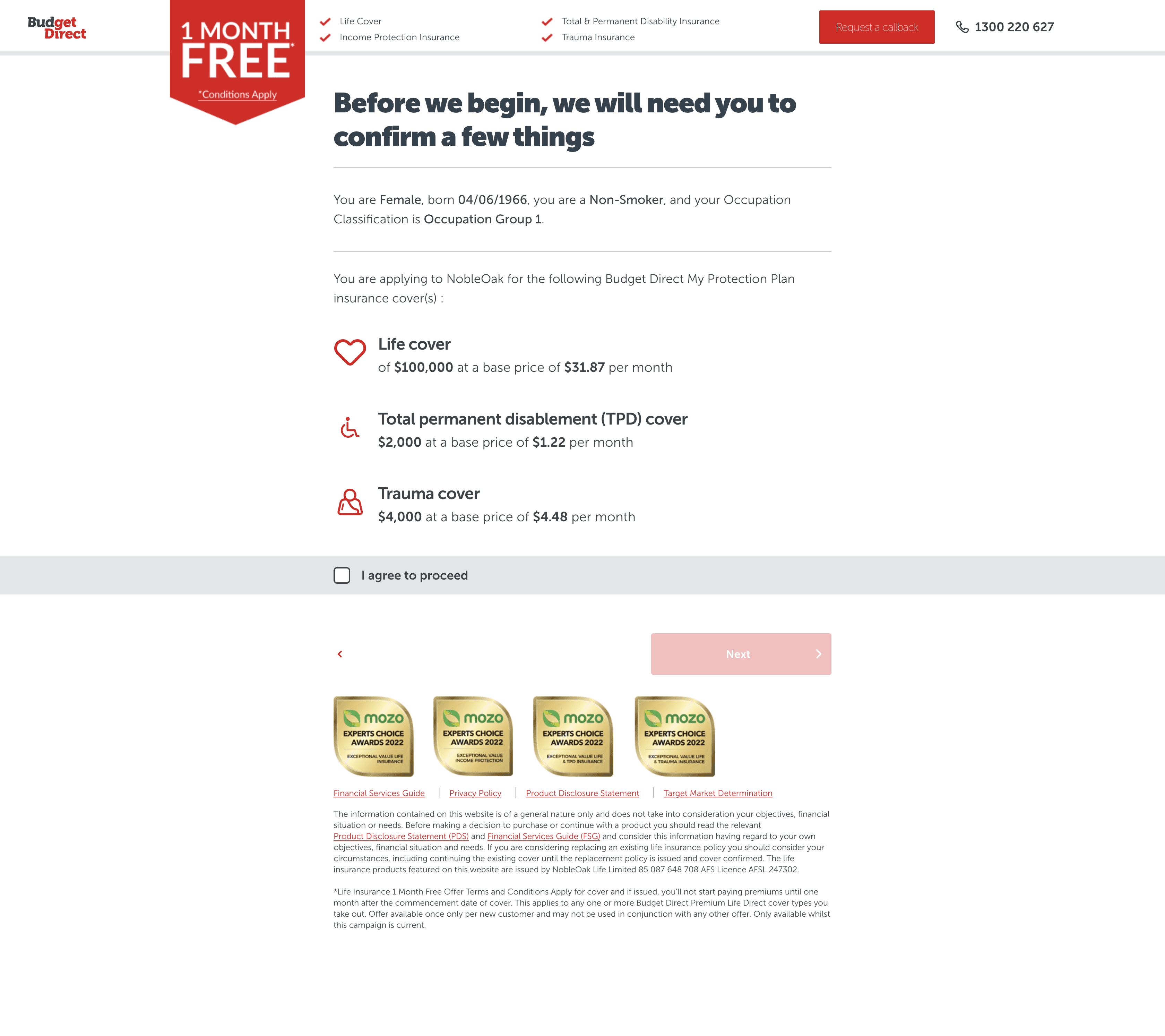 BD white label insurance journey supports an embedded distribution channel generating approximately $2.5M in annual revenue. It allows customers to explore and apply for life insurance directly within the BD website, while the product and underwriting are powered by NobleOak behind the scenes.